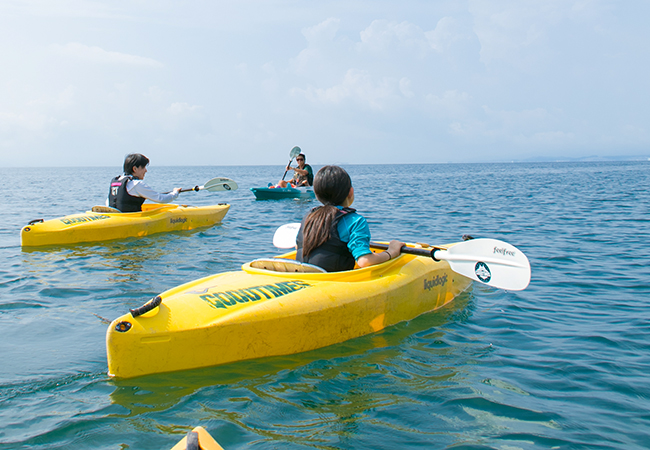 びわ湖の絶景を眺めながら、カヤック(カヌー)に乗って、白鬚神社を目指し湖上参拝します。仲間と、家族と盛り上がること間違いなし。インストラクターが同行するので、初めての方やお子様でも安心なツアーとなっております。